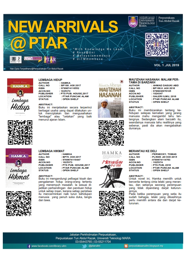 LIBRARY New Arrivals PTAR Keluaran Vol 01 Julai 2019 Perpustakaan UiTM