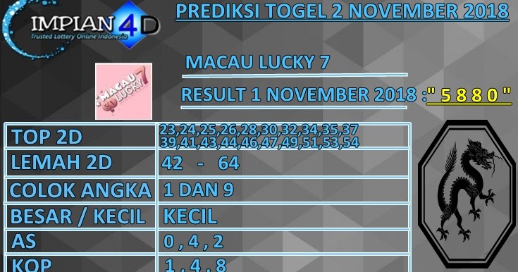 PREDIKSI TOGEL MACAU LUCKY 7 JUMAT 2 NOVEMBER 2018 IMPIAN 4D